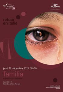 “Familia” by Francesco Costabile Italy / 2024 / 120 min. / Italian | Subtitles: French Special 2×1 rate at $ 15.25 (at the box office only) Cinéma du Musée (1379-A Rue Sherbrooke W., Montréal) Italy’s official candidate for the Best International Feature Film at the 98th Academy Awards in 2026 |